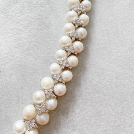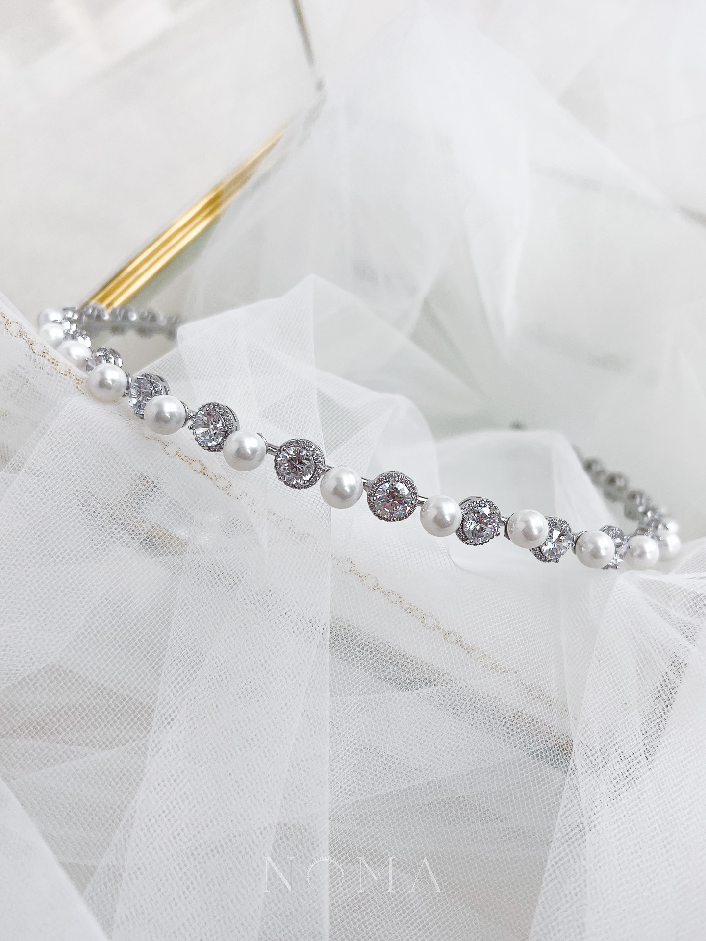 Round Halo Medium Pearl Headband – Rhodium White Gold, White Pearl