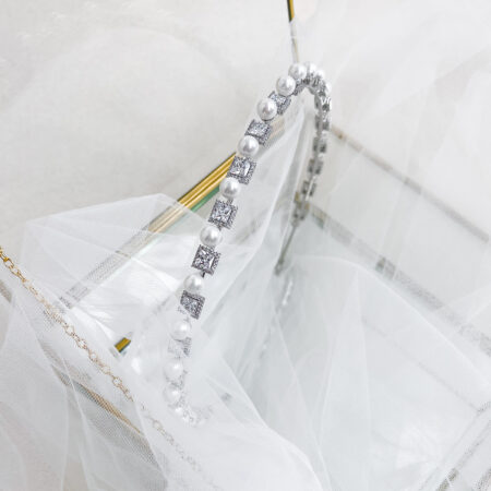 An alternative to wedding crowns for those who want a simple and sleek look without sacrificing luxury.