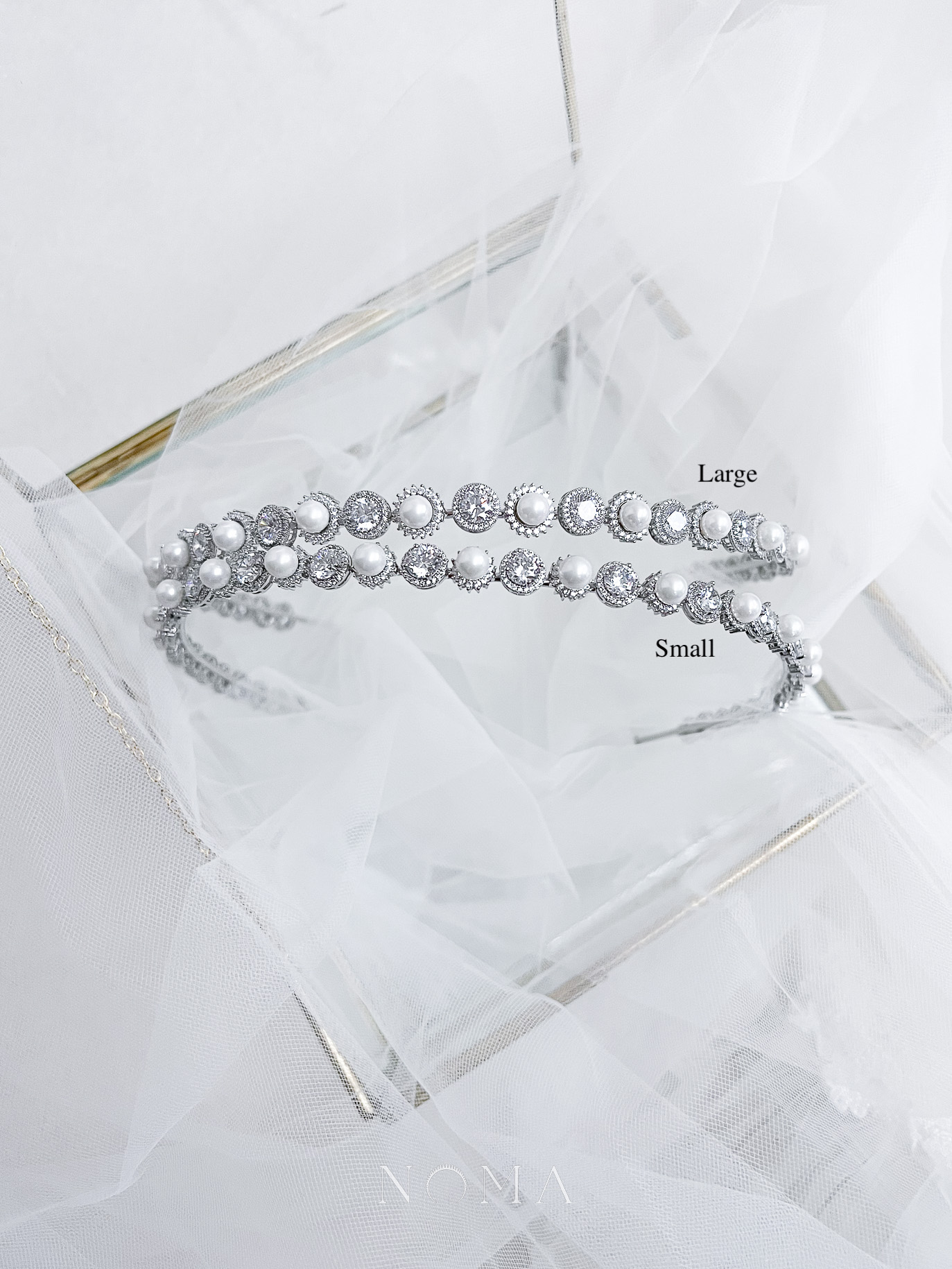 Pearl Halo Round Halo Large Headband – Rhodium White Gold, White Pearl