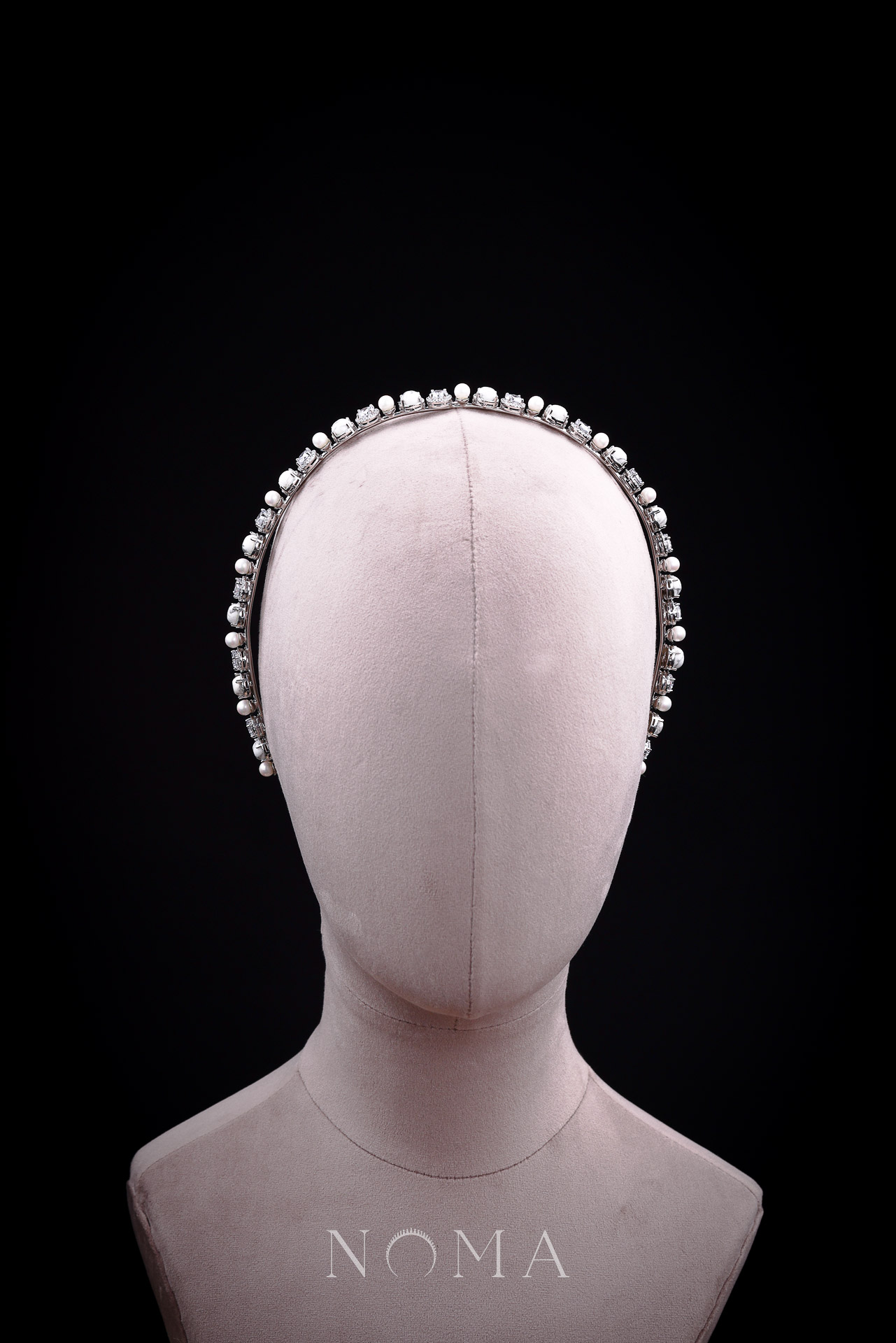 Marble Diamond Pearl Headband – Rhodium White Gold, White