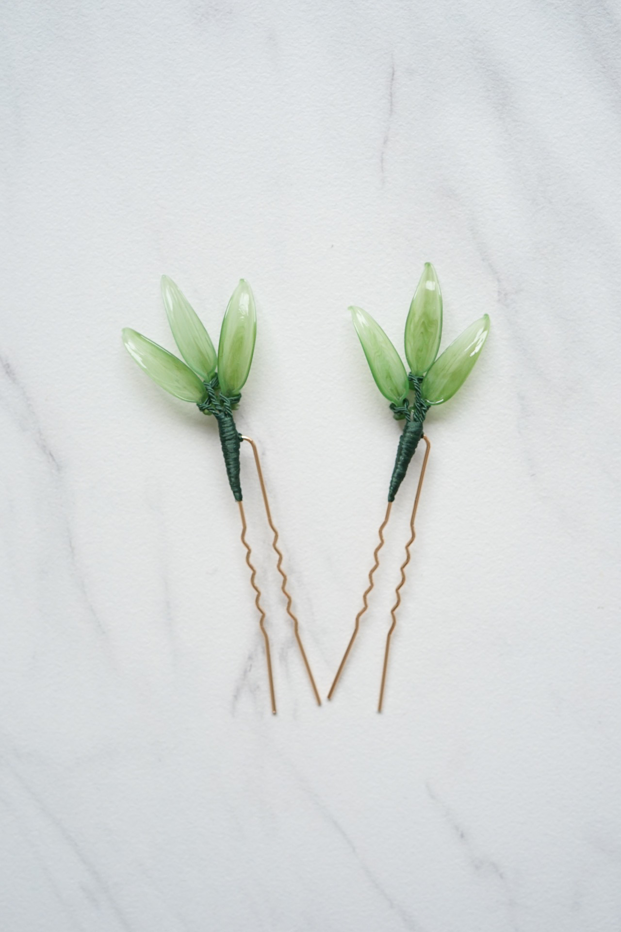 CG Bamboo Leaves Hairpin Set – Gold, Green (2 pcs)