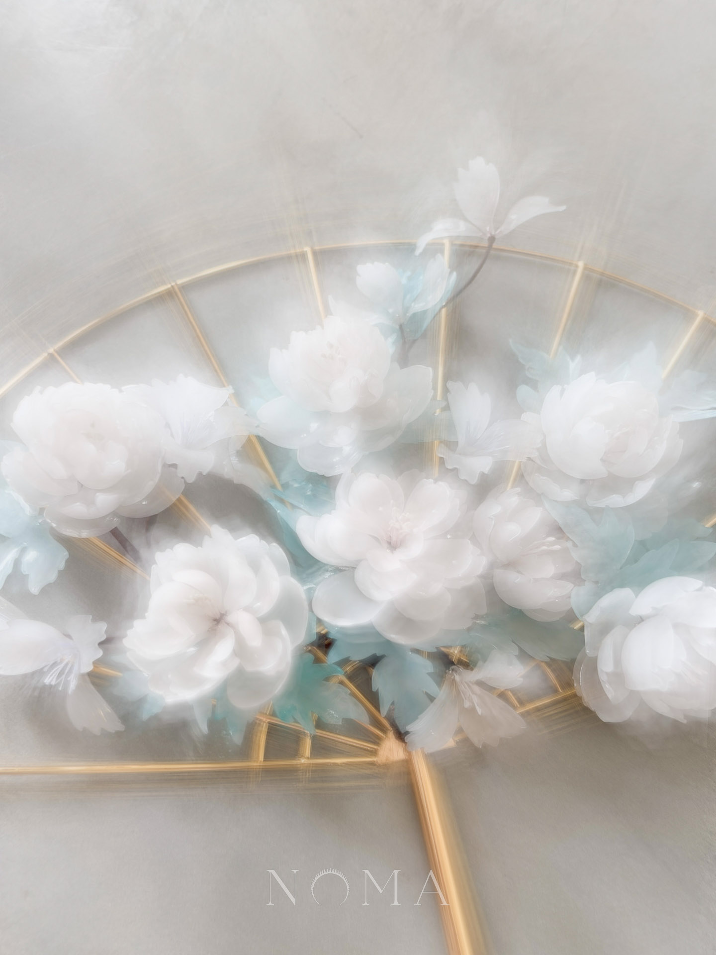 HS White Peony Blossom Fan – 18k Yellow Gold, White
