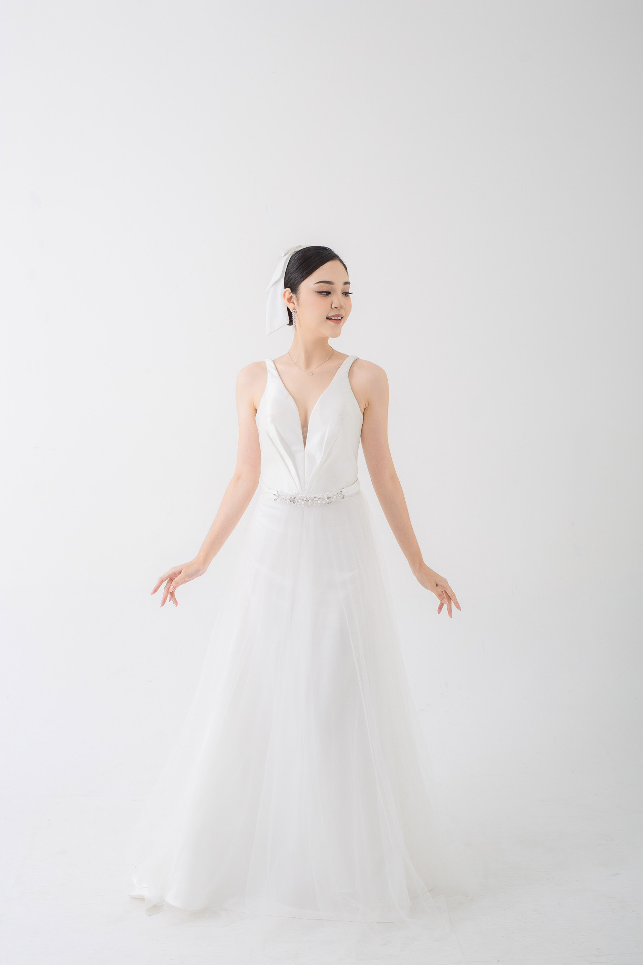 Draping Satin Bow – White