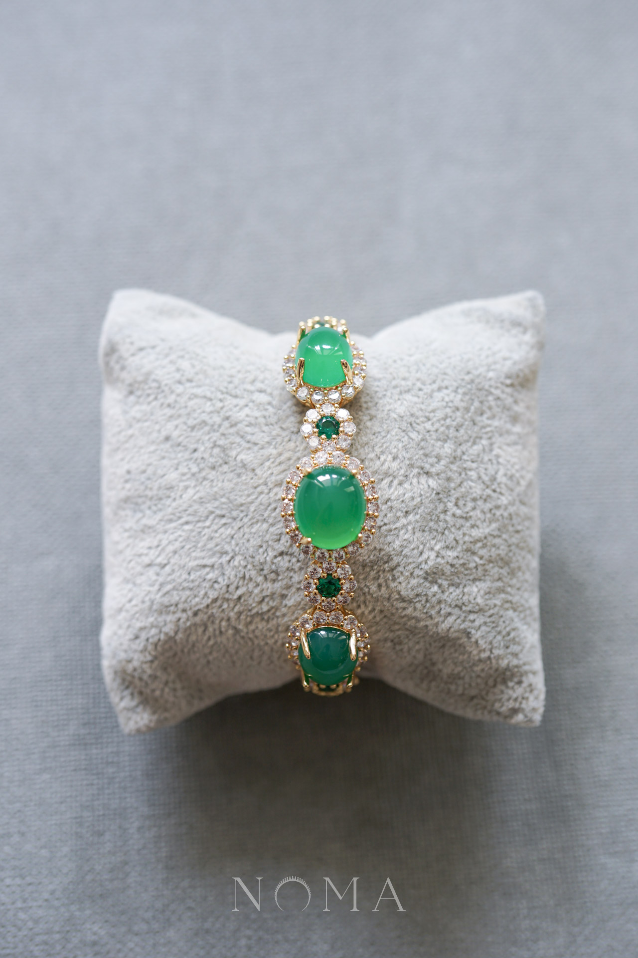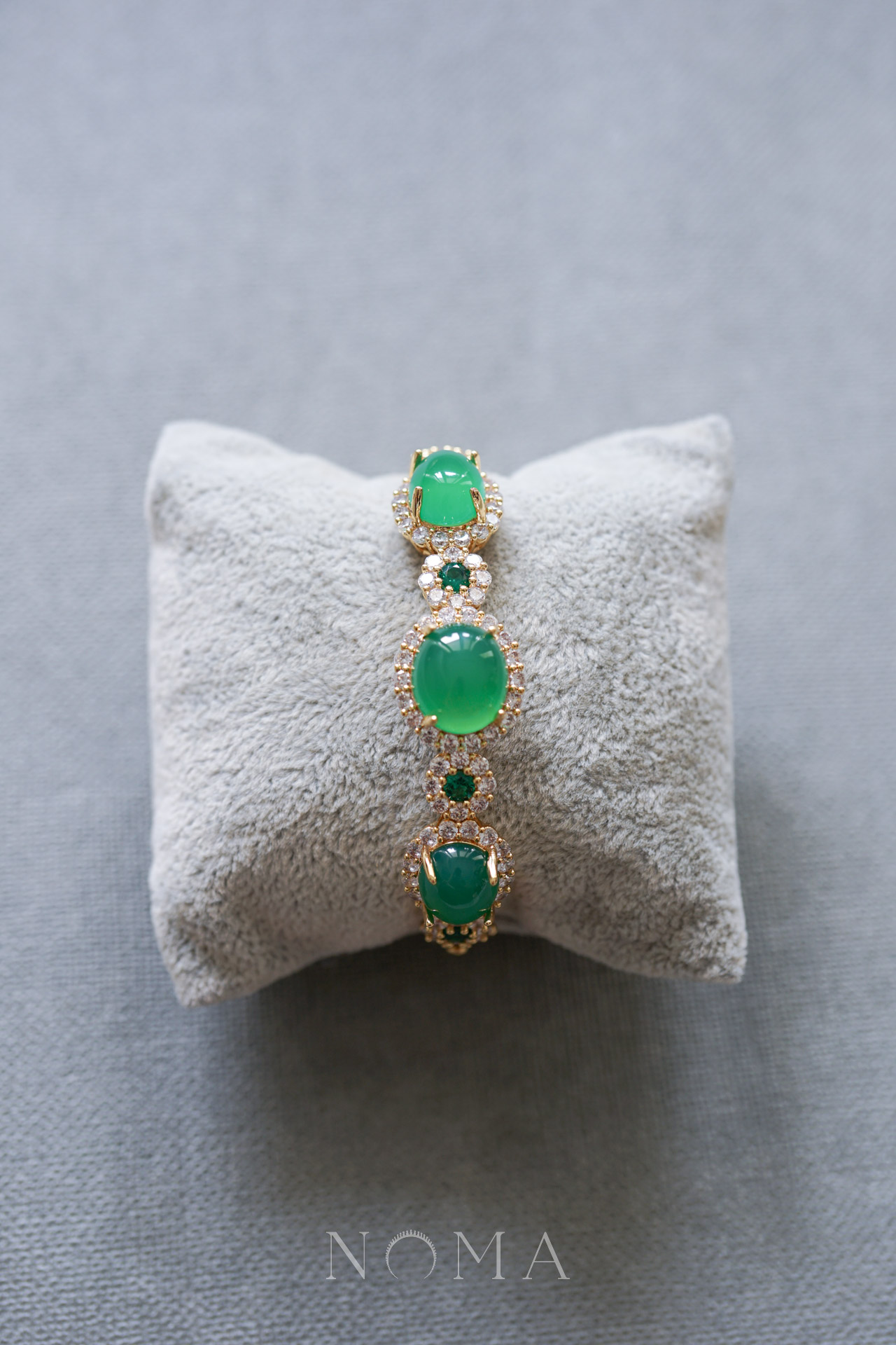 Superior Triple Oval Jade Emerald Bangle – 18k Yellow Gold
