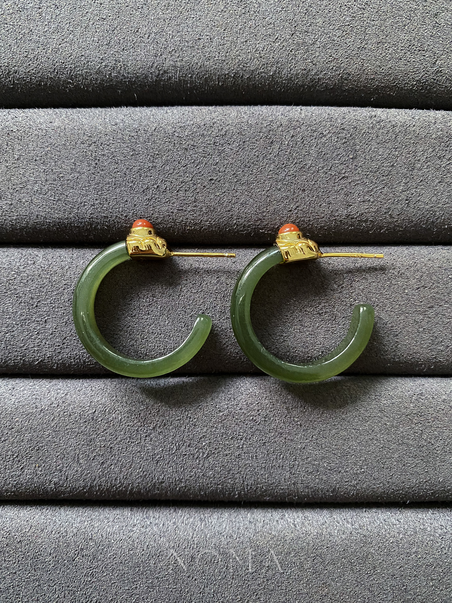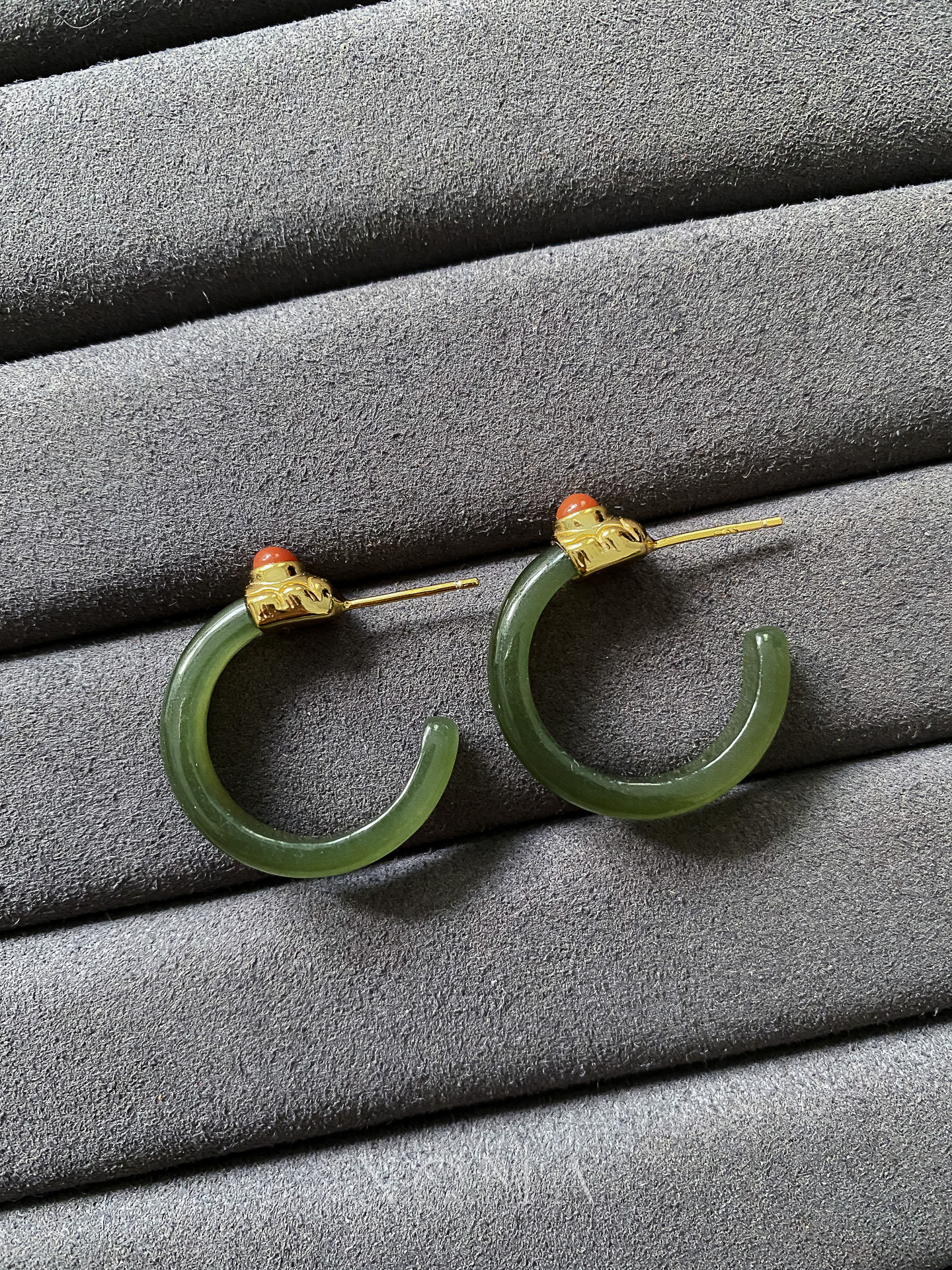 Half Circle Jade Earrings – 18k Yellow Gold, Jade