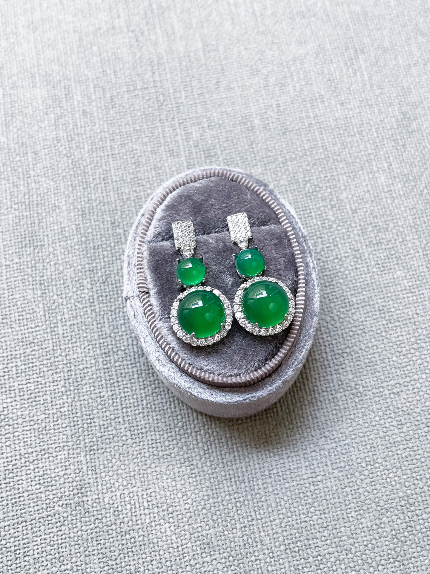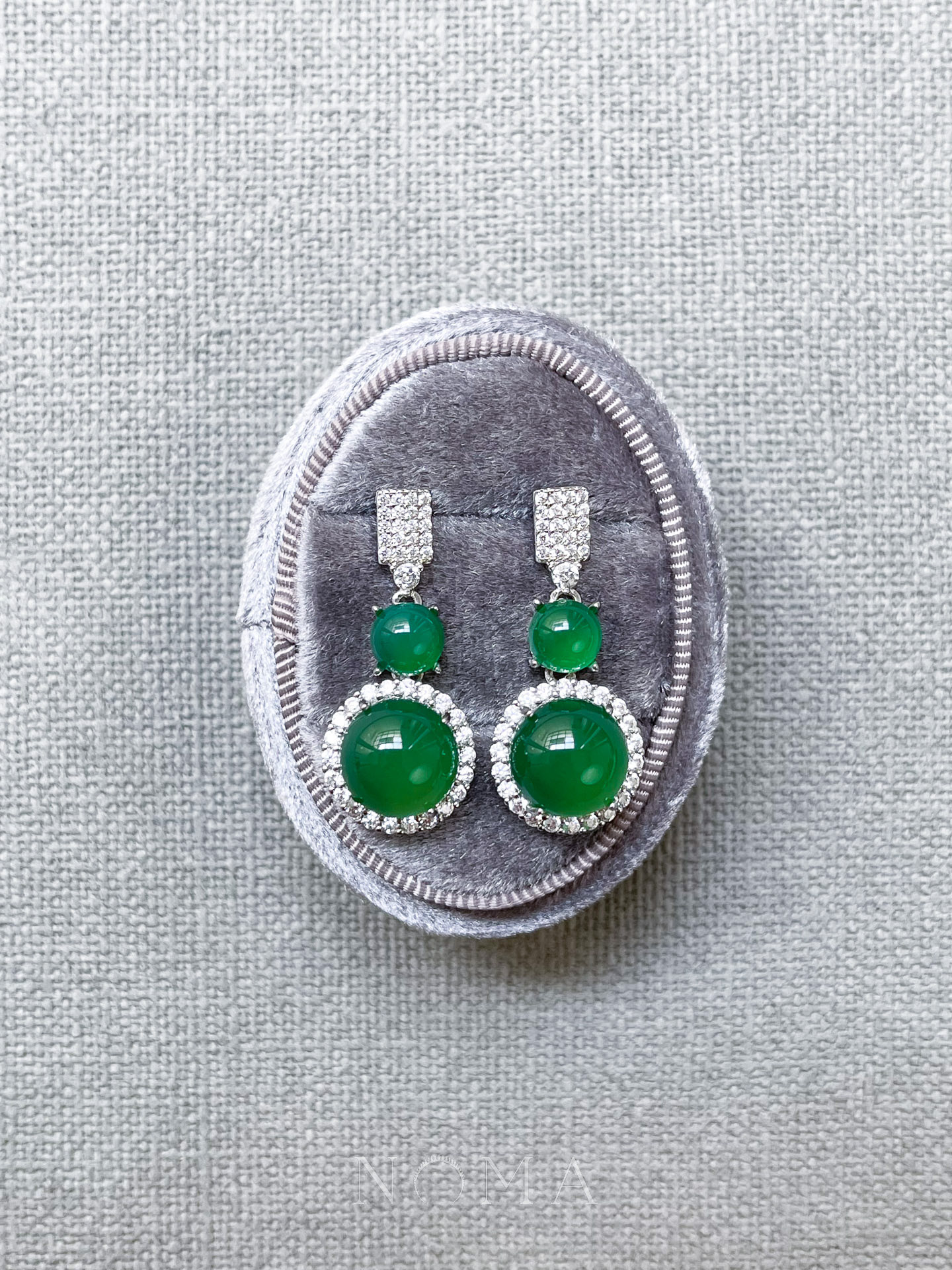 Superior Double Round Jade Drop Earrings – Rhodium White Gold, Jade