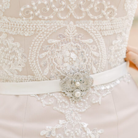 Dangling Pearl Brooch – Rhodium White Gold, White Pearl