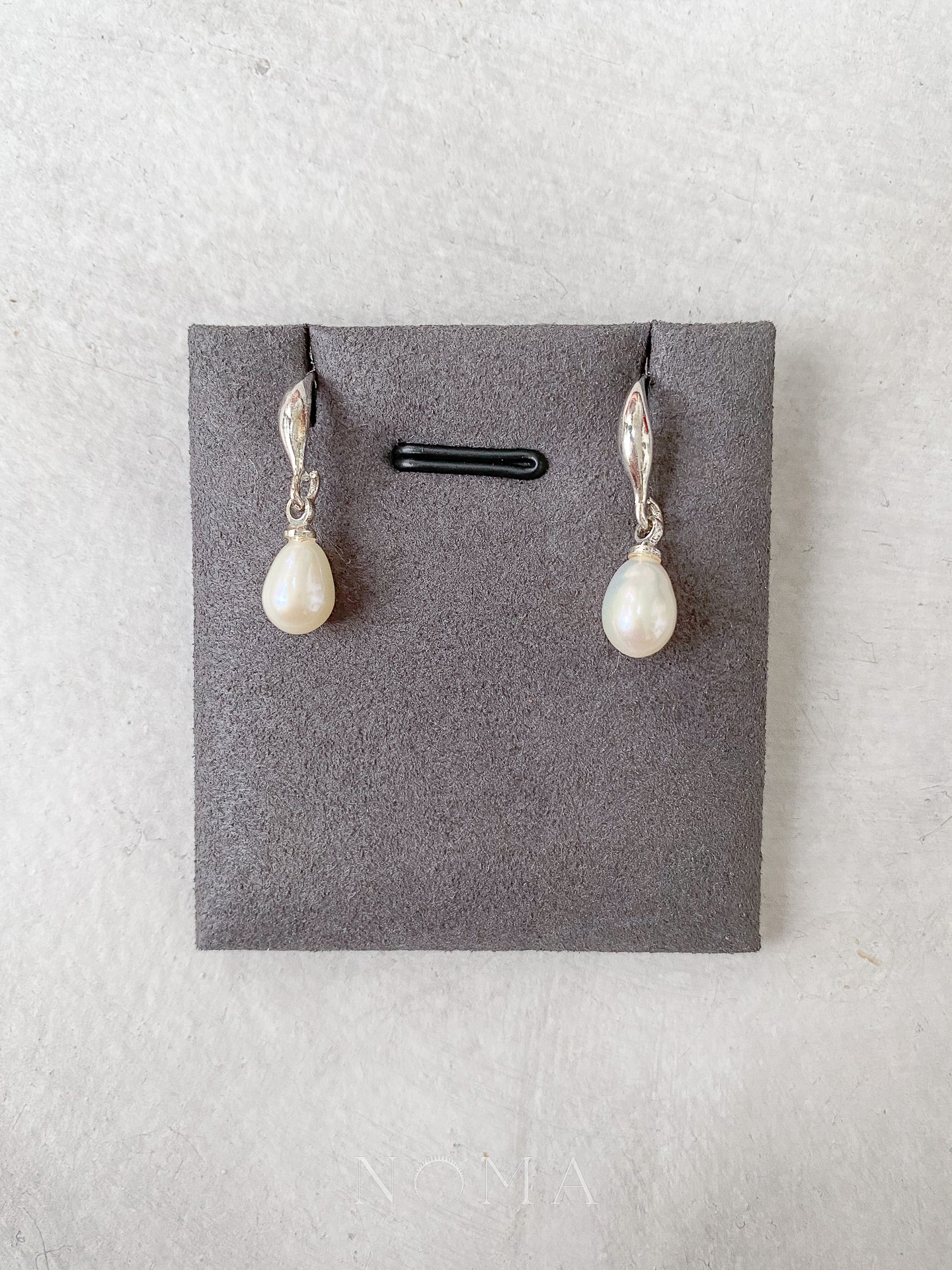 Pearl Drop Oval Earrings – Unplated Silver, White Pearl