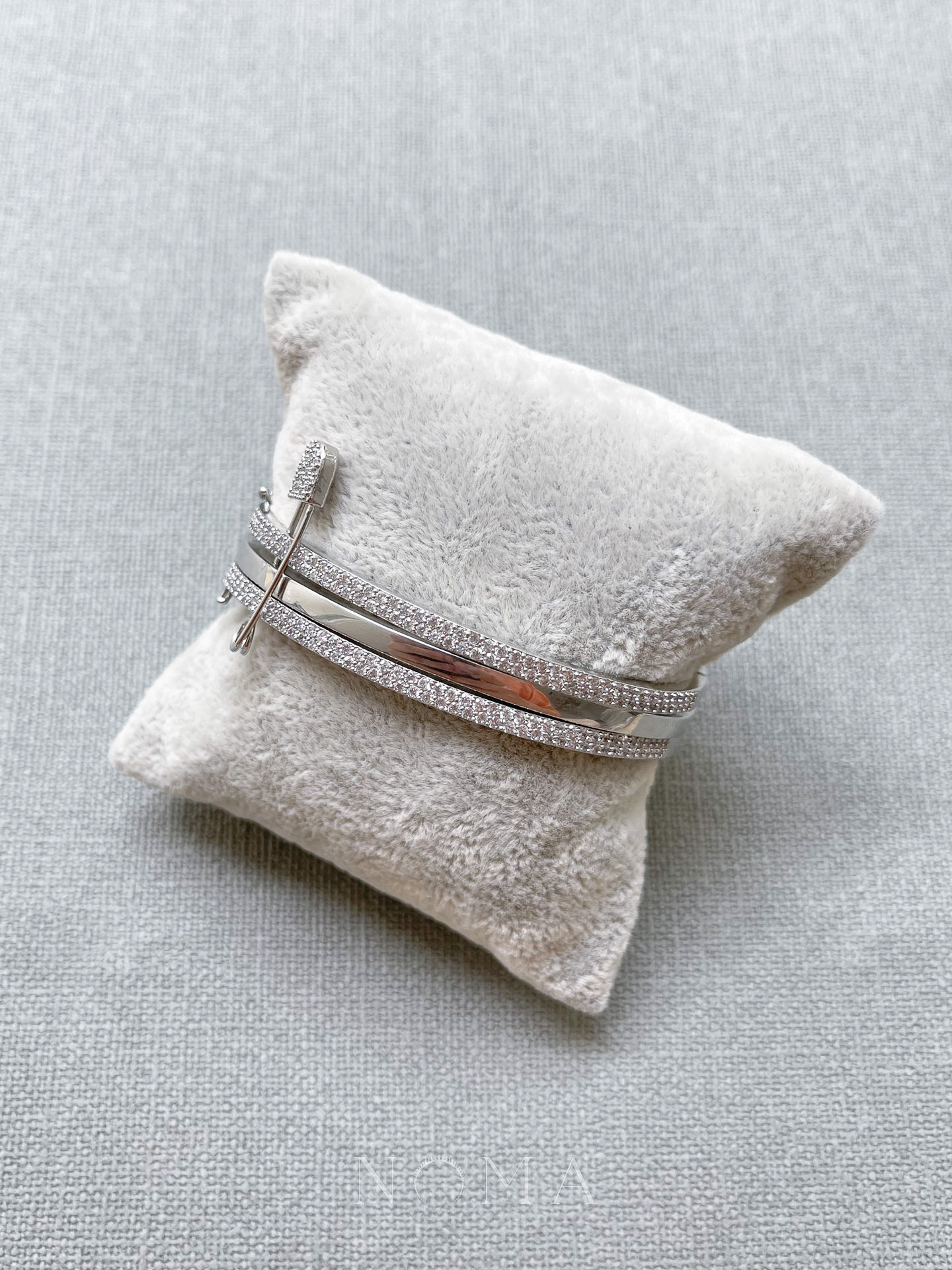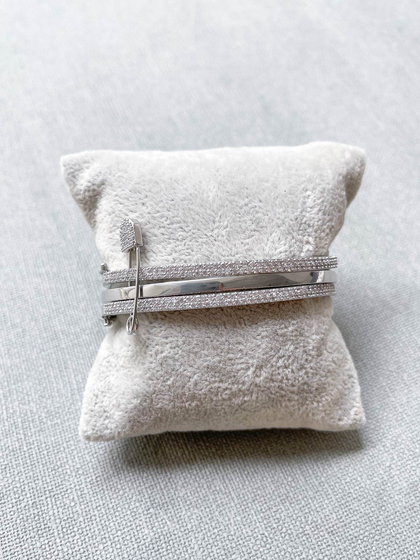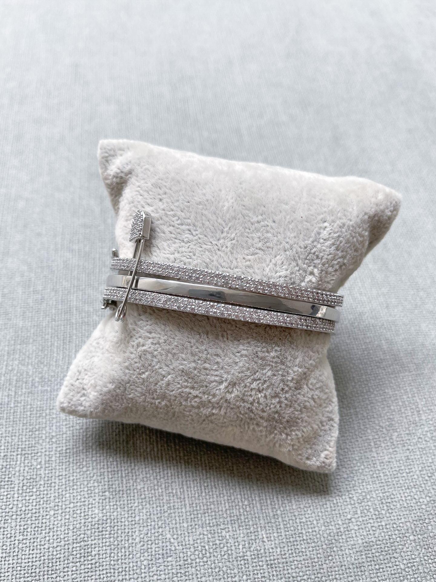 Triple Pinned Bangle – Rhodium White Gold