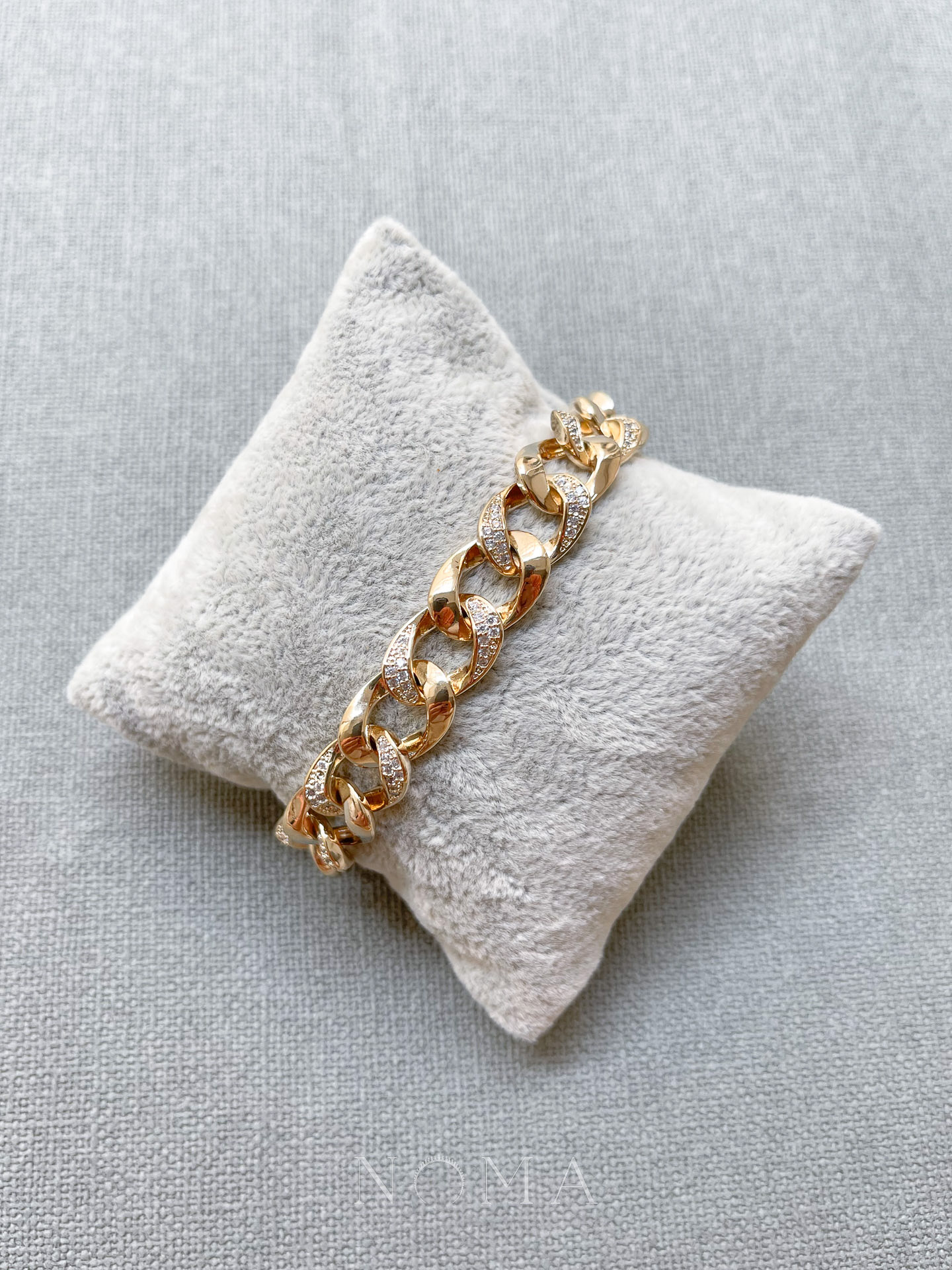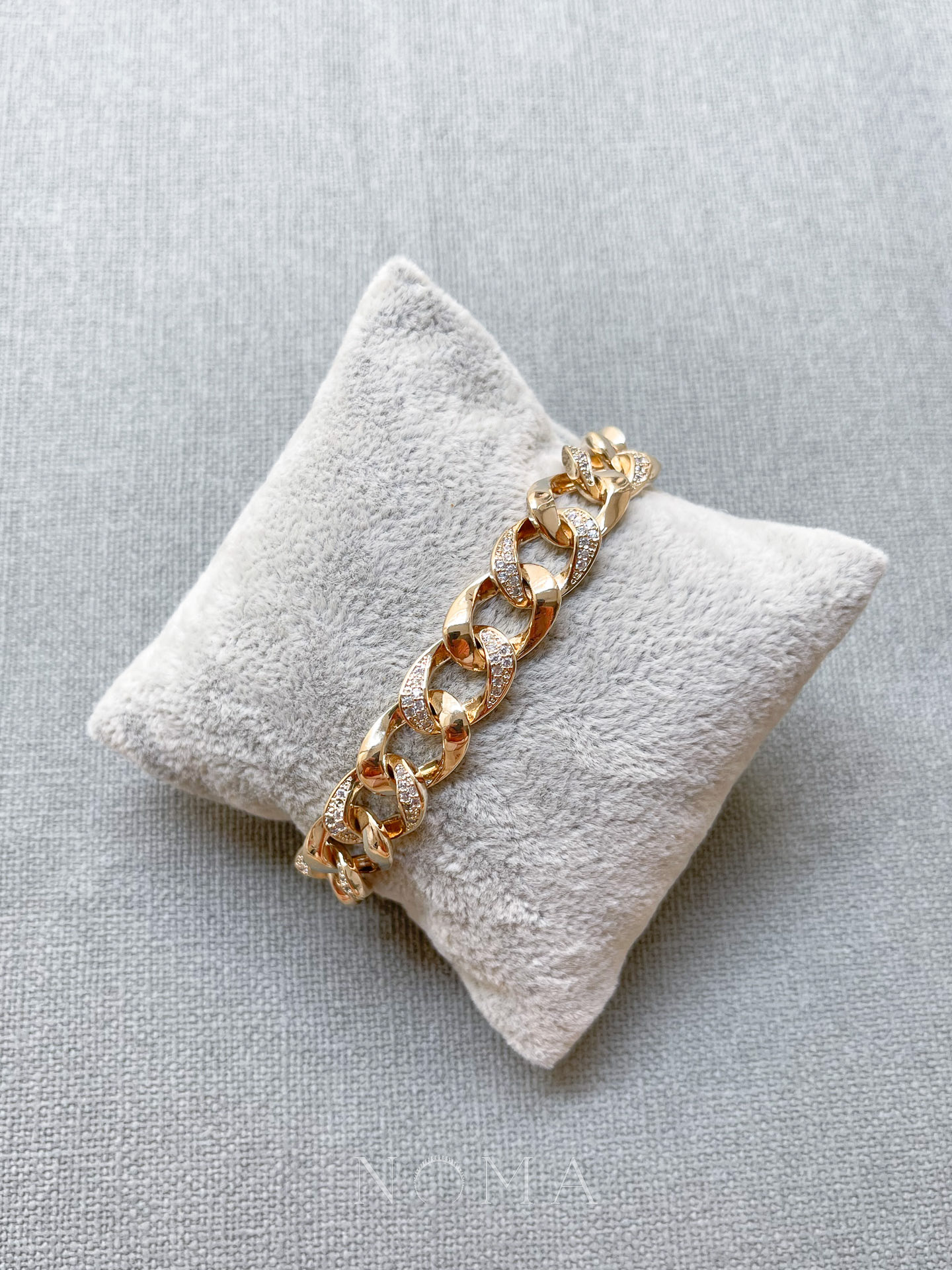 Large Half Paved Link Chain Bracelet – 18k Yellow Gold