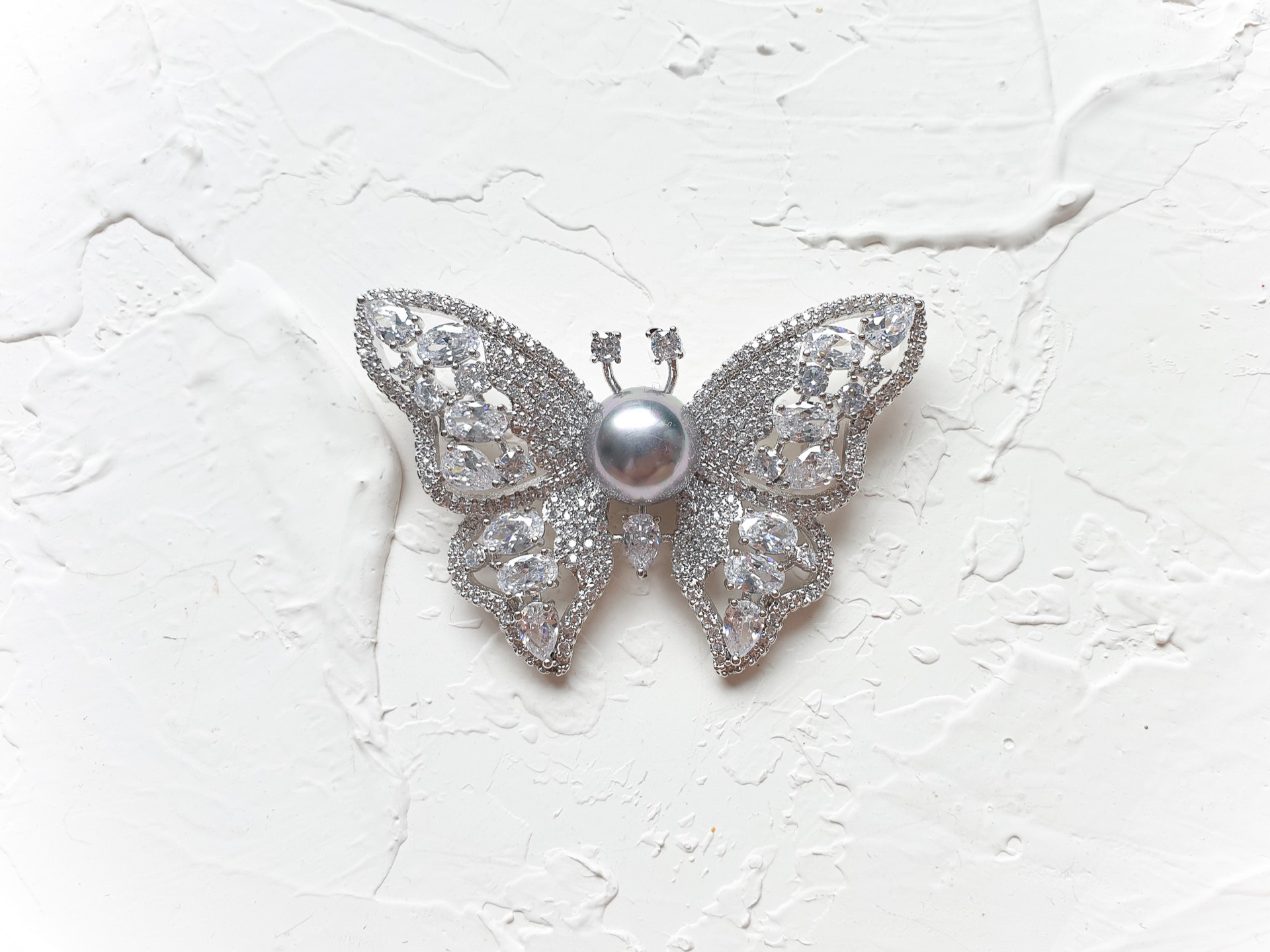 Butterfly Pearl Brooch – Rhodium White Gold, Black Pearl