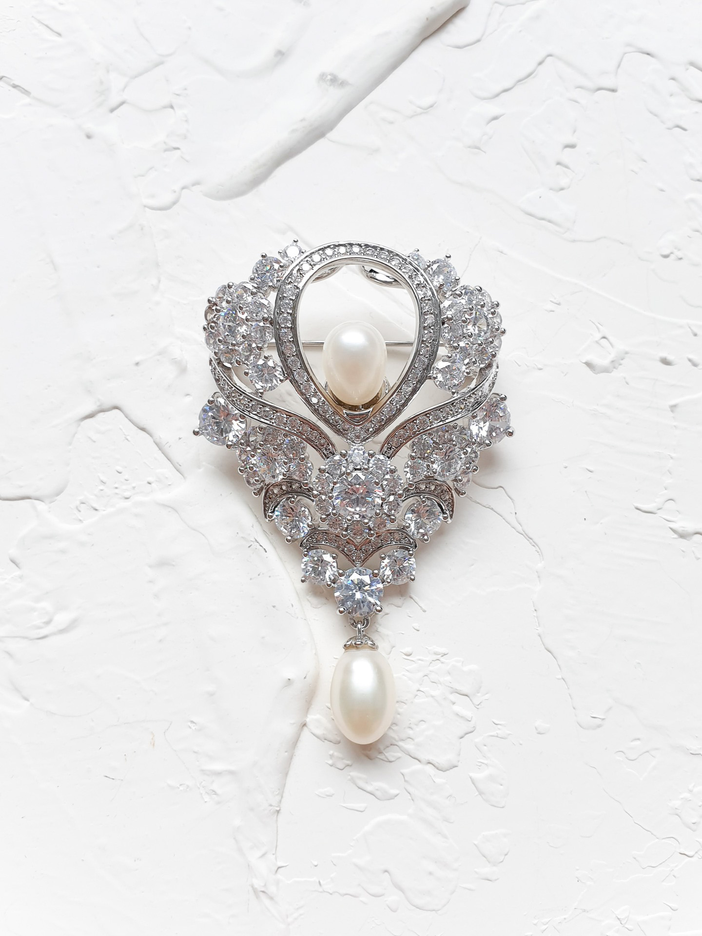 Royal Pearl Brooch – Rhodium White Gold, White Pearl