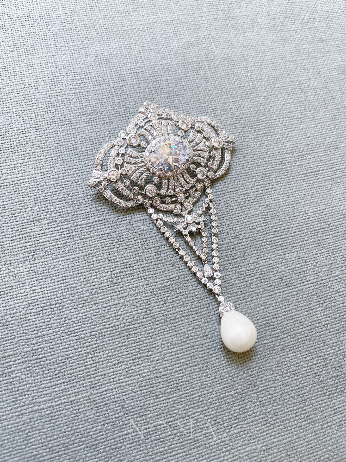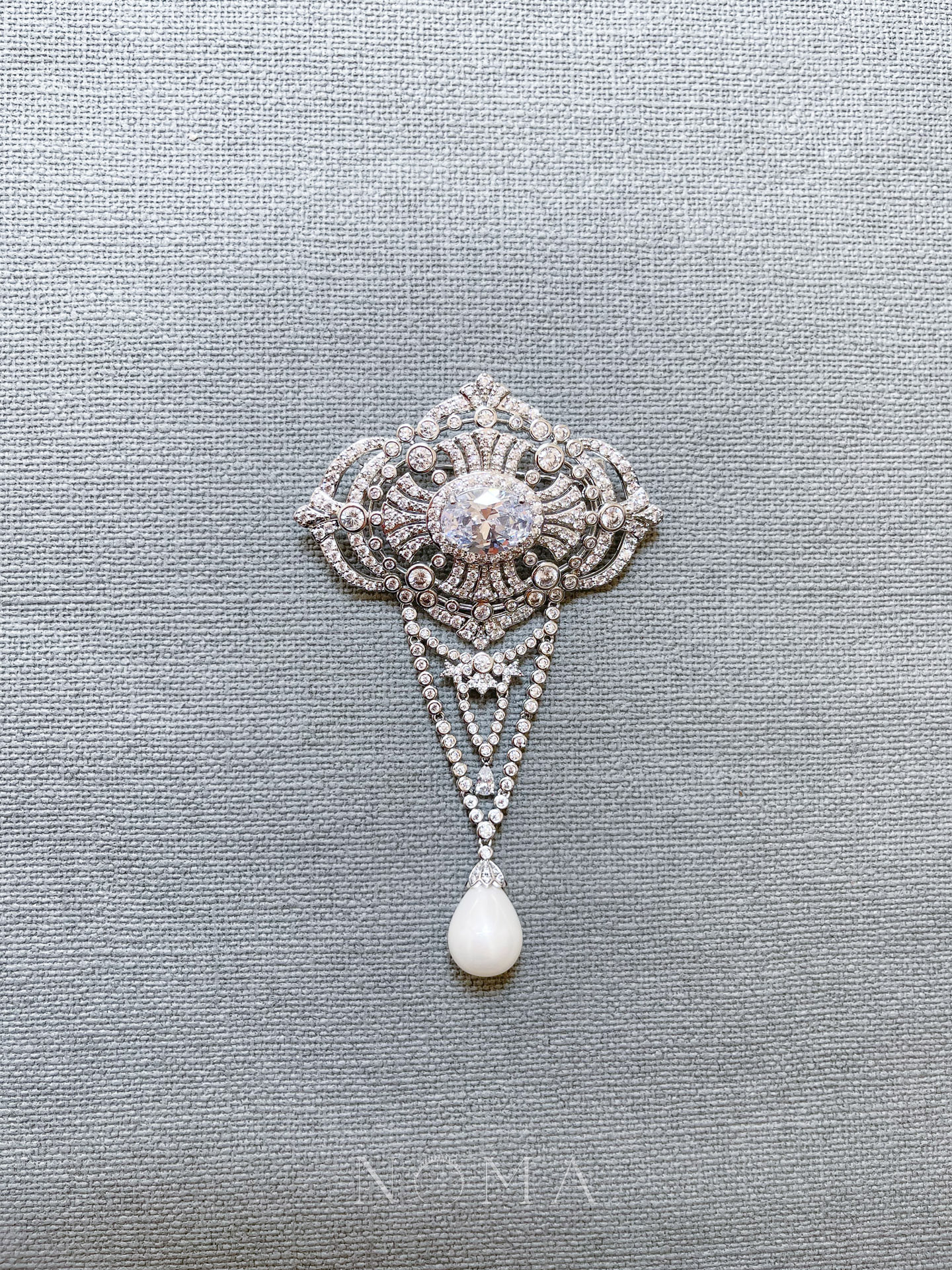 Aya Sofia Brooch – Rhodium White Gold, White Pearl