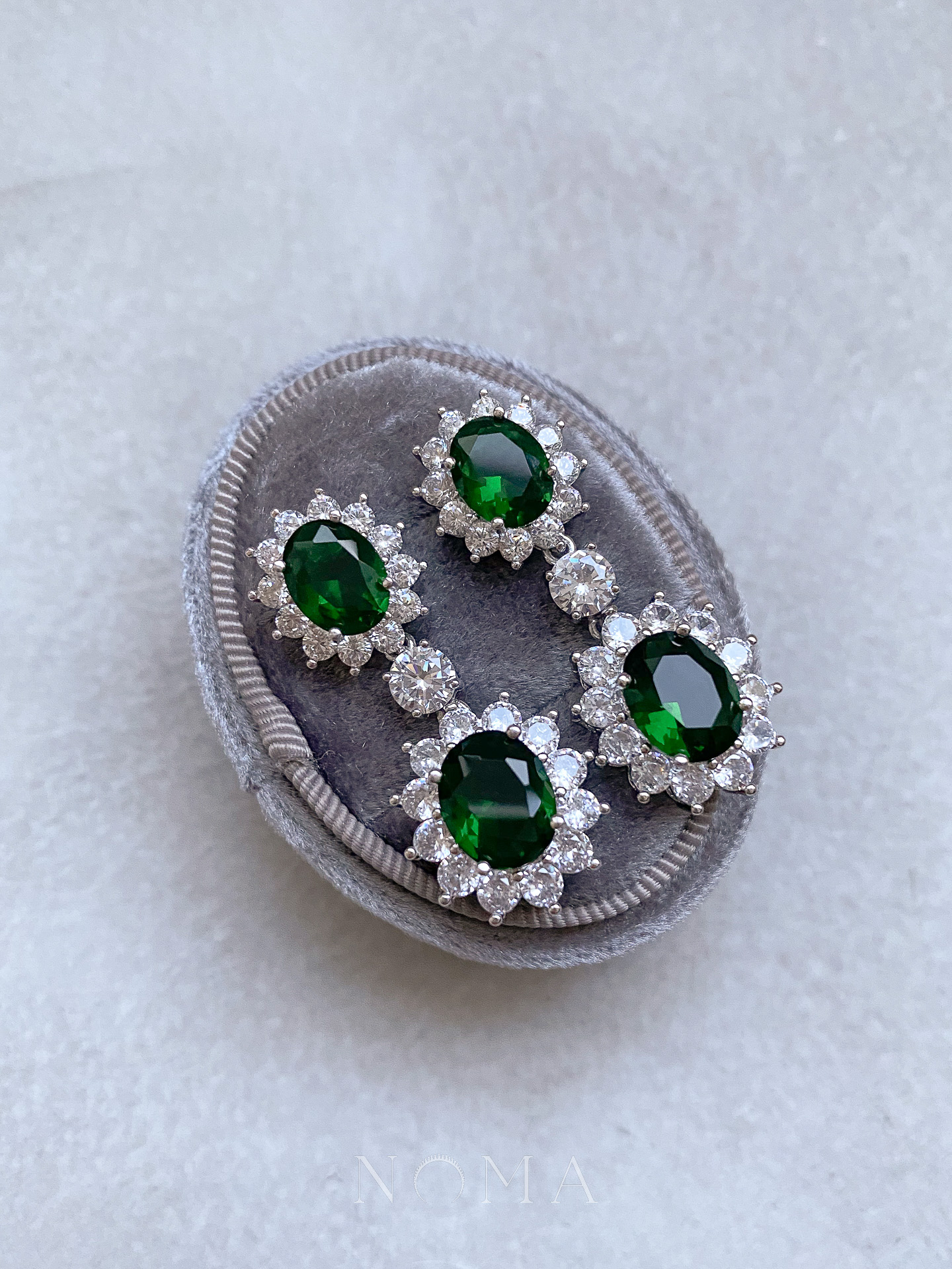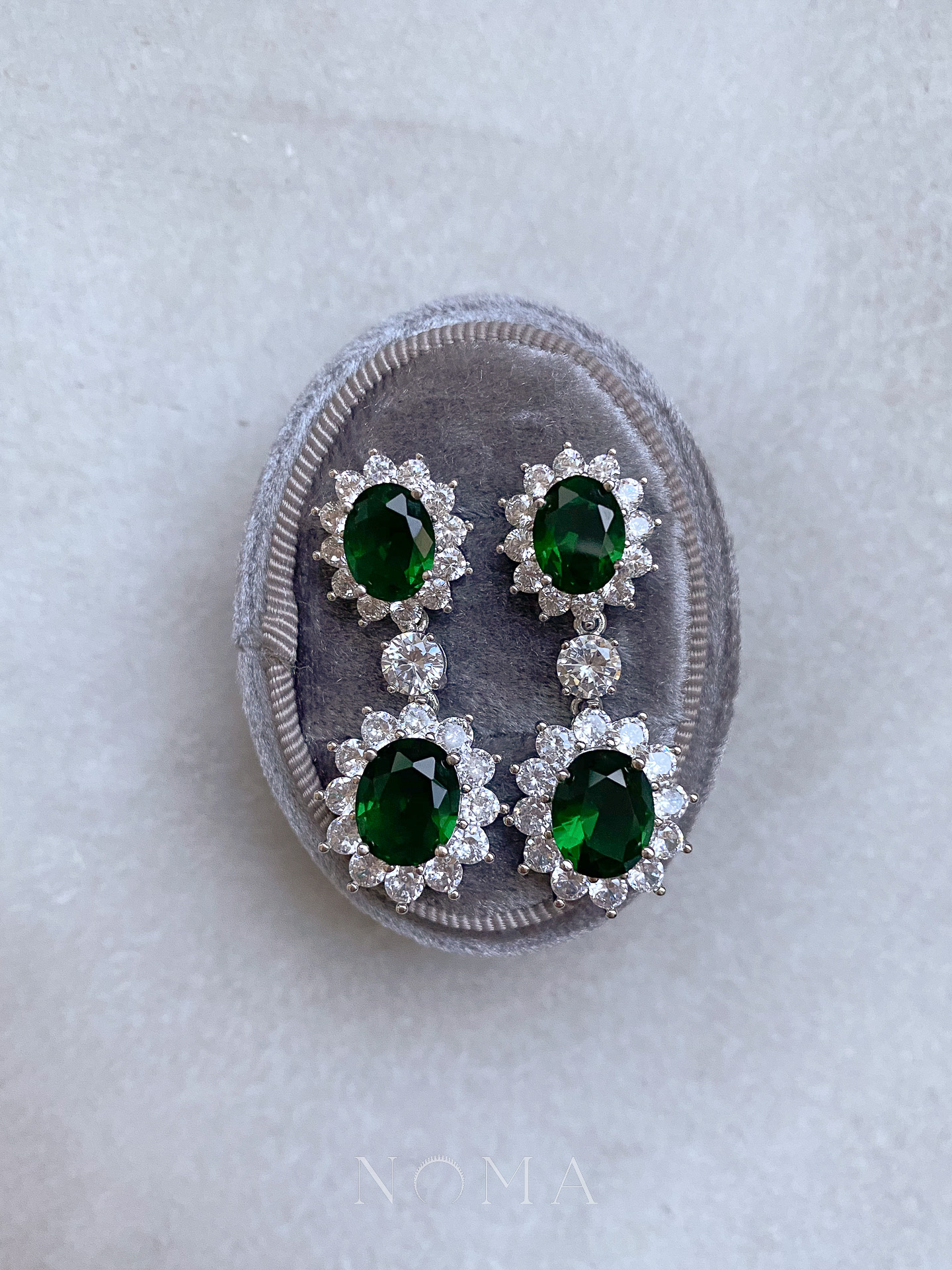 Drop Oval Radiance Earrings – Rhodium White Gold, Emerald