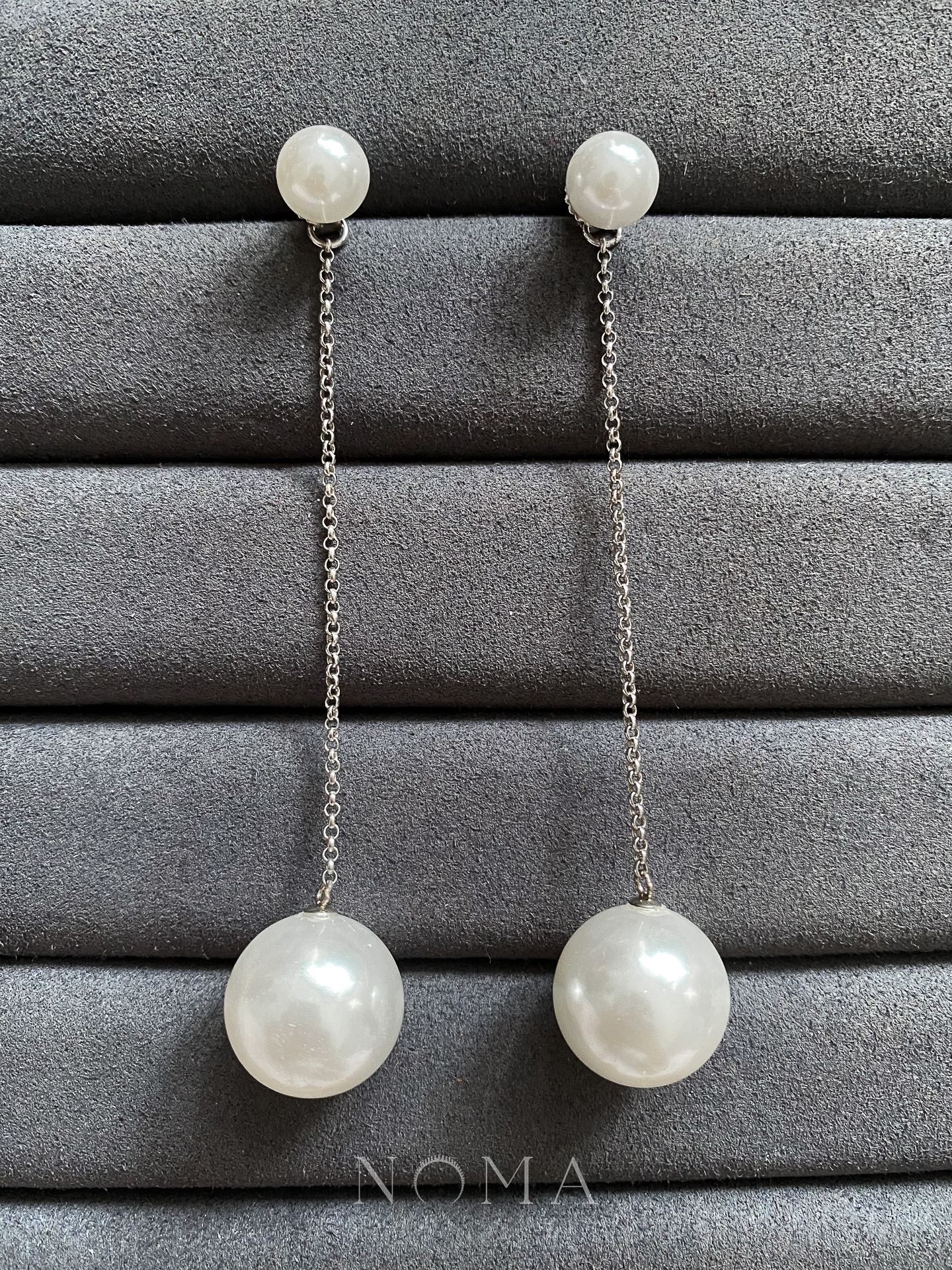 Extra Long Top Down Pearl Earrings – Unplated Silver, White Pearl