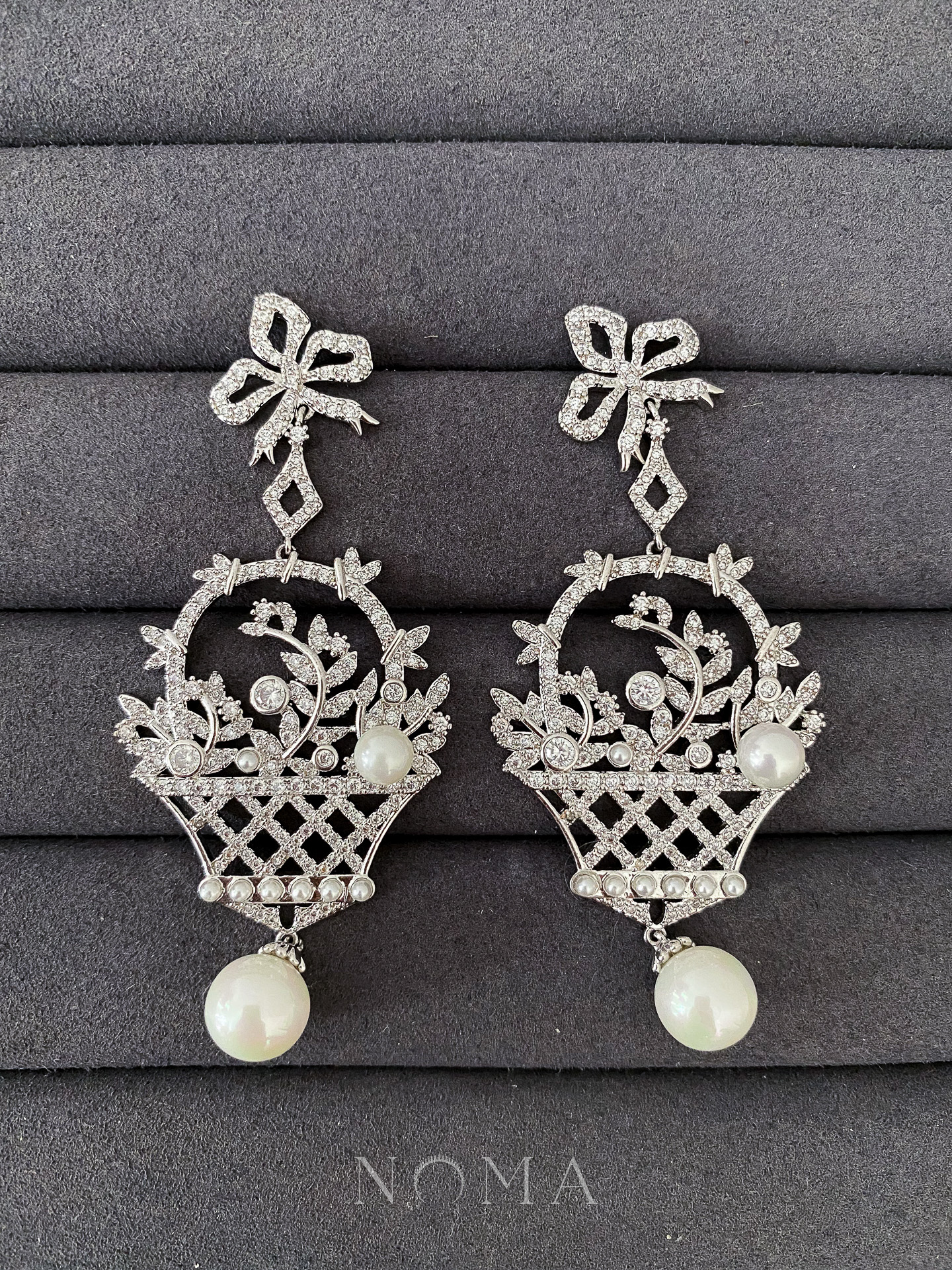 Picnic Basket Earrings – Rhodium White Gold, White Pearl