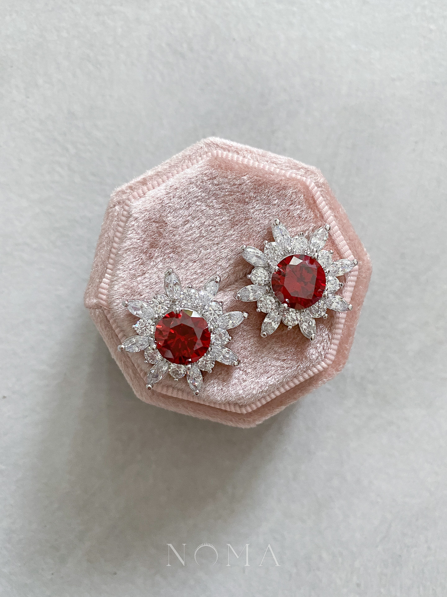 Spiked Ruby Stud Earrings – Rhodium White Gold, Ruby