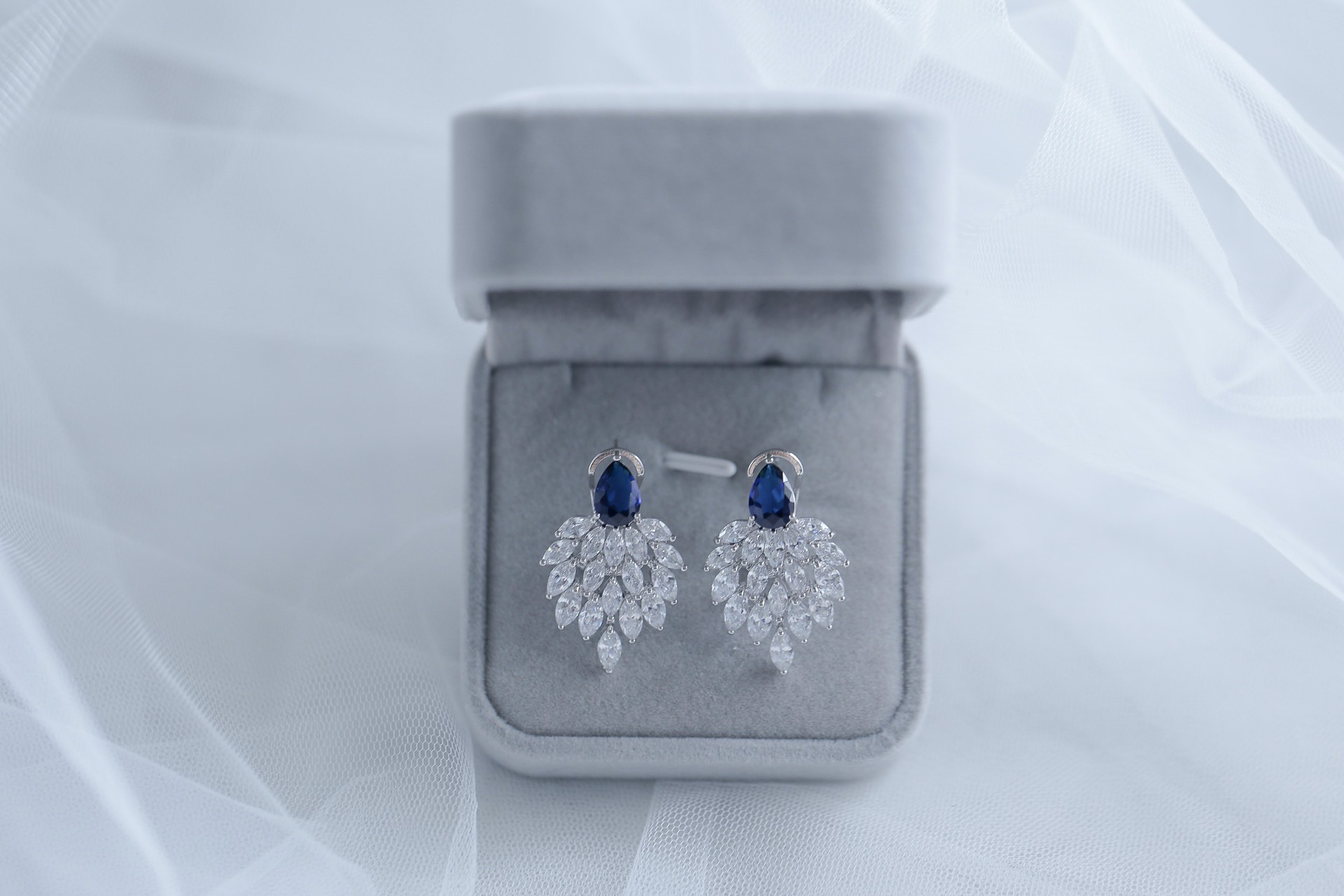 Sapphire Bouquet Earrings – Rhodium White Gold, Sapphire