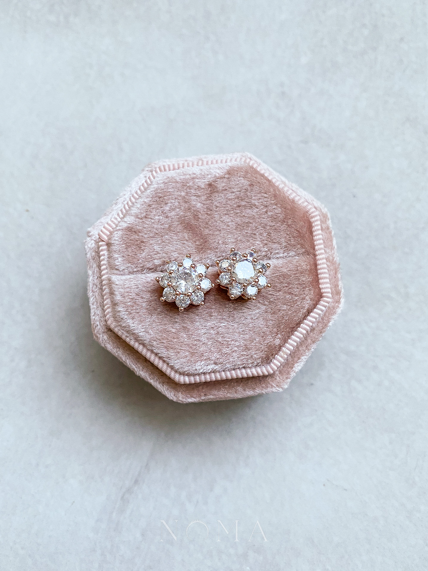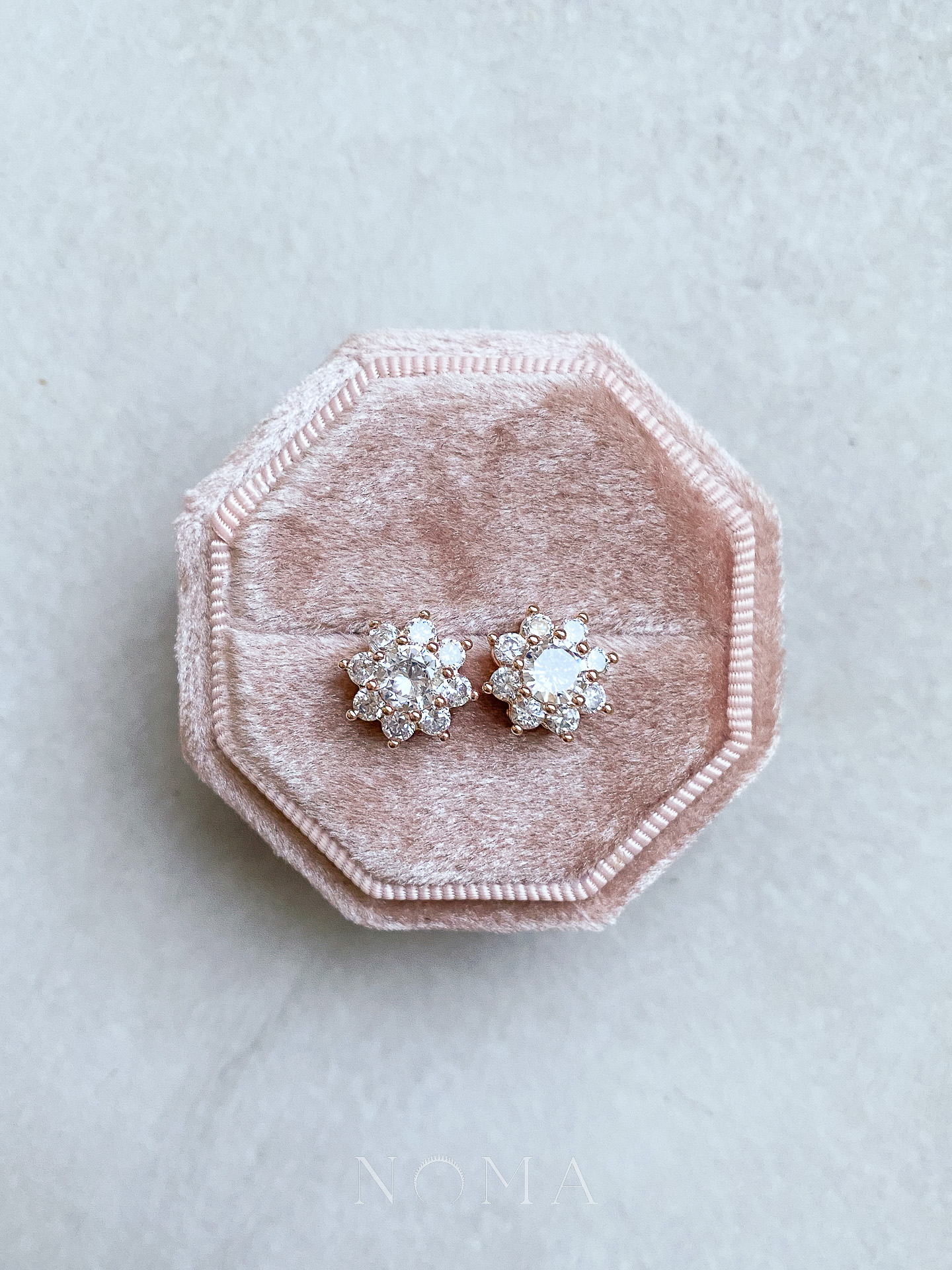 Round Paved Stud Earrings – 18k Rose Gold, White Diamond (Needle)