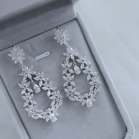 Oval Flower Earrings – Rhodium White Gold (Needle) Rent from Rp600.000
