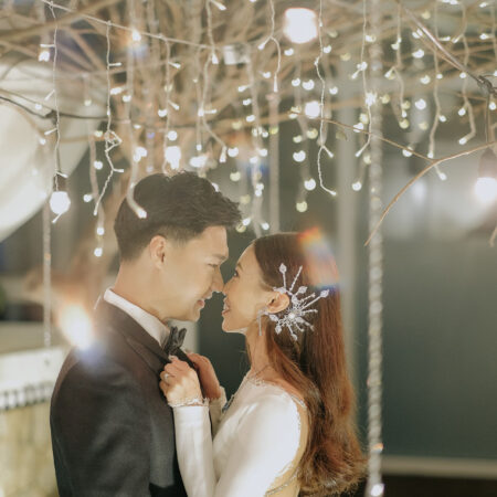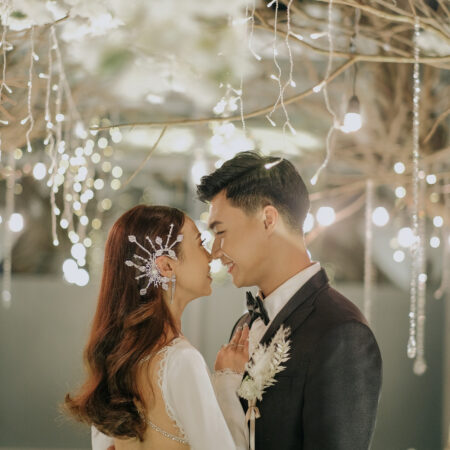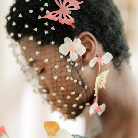 Flower Baguette Flakes Earpiece Pair – White Gold (1 pair) Rent from Rp2.990.000