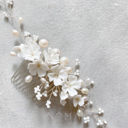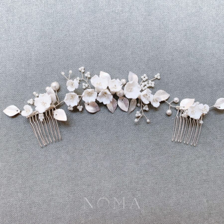 Clay Flower Blossom Twigs Haircomb – White Silver Rent from Rp900.000