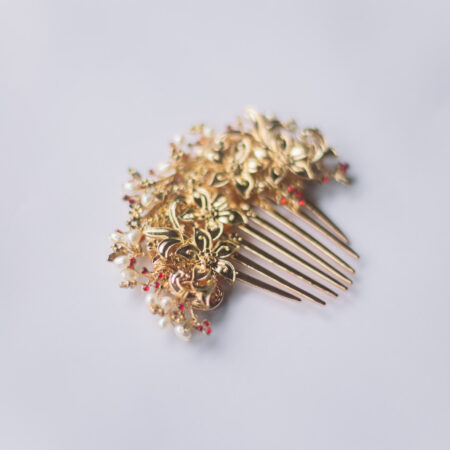 Blossoming Empress Haircomb – Gold, Red Rent from Rp990.000